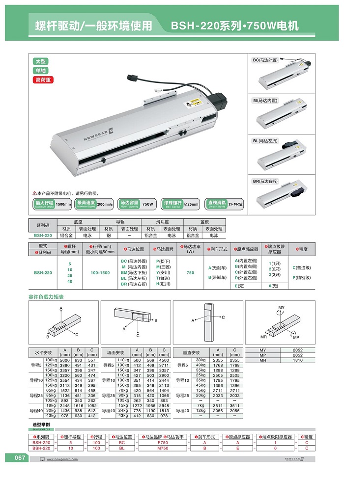 六、馬達(dá)安裝位置:多方向馬達(dá)安裝位置可供選擇,讓機(jī)臺設(shè)計(jì)更有彈性。Bc(馬達(dá)外置)BL(馬達(dá)左折) BR(馬達(dá)右折) BM(馬達(dá)下折) M(馬達(dá)內(nèi)置)